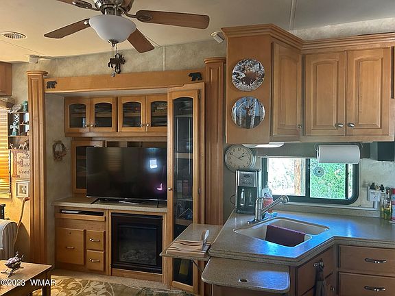 One-of-a-kind property, 40 ft RV furnished, with 10x30 covered deck and 7X11 laundry room. Guest quarters (1bd 1bth) sleeps 4 gives addl 224 sq ft. and has an addl RV hookup. Workshop w/power, garden shed, with raised garden beds. Great neighbors, easy access, quiet (on dead end road), close to state land, horses ok, lots of space for your toys. Makes a great summer home. Motivator seller. Check this one out before its gone.