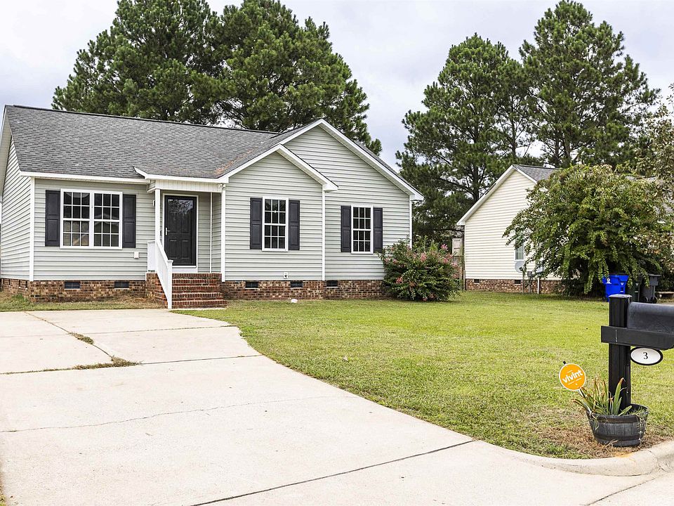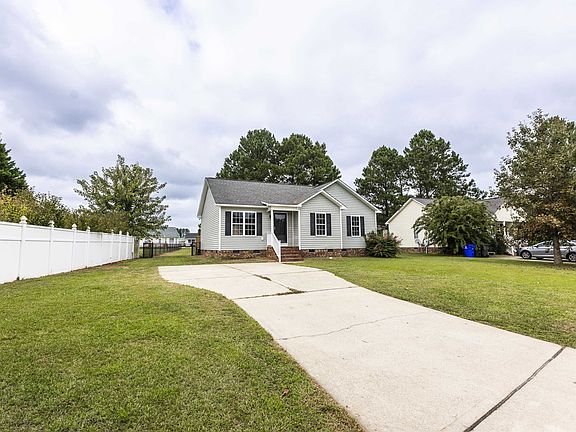 Located in coveted Broadway Place subdivision with NO HOA, this three bedroom, two bath home nestled in a cul de sac is a stone's throw from Benson Elementary. Includes stainless steel kitchen appliances, new paint, and carpet. Maximize your outdoor living with a large back porch, fenced in backyard, and huge impressive shed for hobbies and storage. Minutes from Highway 50, Highway 301, I-40, and I-95.