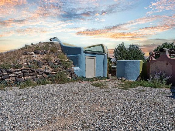 A special opportunity to own an architectural wonder in majestic Taos, a sustainable Earthship set on just under three quarters of an acre with some of the best views in Northern New Mexico. The structure itself is custom built with several South Western touches throughout the split-level structure with an indoor atrium perfect for growing varieties of greenery year-round. Brick floors, art nichos, thoughtful cabinetry and shelving, vibrant tile, and bancitos for extra seating & ample storage are few special features within the home. The Earthship is heated by the sun with passive solar windows, along with a wood burning stove to complete the ambivalence, and set the mood for relaxing after a long day of work or play. Plenty of space for guests to sleep comfortably, and the drop-down Murphy bed is ideal for providing extra space in an already free-flowing floor plan. The outdoor space at 3 North Lemuria is an absolute gem with plenty of space to garden, for the pets to roam, and children to play with immersive Mountain & Gorge views in all directions. The rest you have to see for yourself, this is your chance to own a sustainable architectural wonder in the high-desert. Come see!