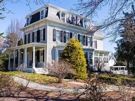 This Mystic, luxury, water-view oasis is a treasure and perfect for those with a discerning taste for quality construction, modern amenities and a thirst for navigating the open waters of the Mystic River and Long Island Sound. Home includes easy access to all the amenities Mystic has to offer including the finest in dining and nautical adventures. This empire styled Victorian home showcases spacious designer kitchen with detailed ceilings/moldings, glistening hardwood white oak flooring, custom cherry cabinetry, granite counter tops, Sub Zero refrigerator and counter drawers, double Dacor wall ovens, a 5 burner Thermador propane cook-top and range hood. Kitchen center island complete with double stainless sink, seating for 6 and ideal space for today's living style. The propane fireplace accents the spacious living room with custom window treatments and plantation shutters throughout the home. This 5 bedroom 4 full bathroom home comfortably accommodates residents and guests alike. The upper floor water views accent the primary bedroom's grandeur extending to adjoining ensuite with walk in shower, soaking tub and dual vanities. The home's lower level includes a 2 car garage with ample space for a workshop or additional storage opportunities. The professionally landscaped gardens frame this majestic home. Security system, garden irrigation, Buderus G215 heating, sound system included. Convenient access to the area colleges, yacht clubs, and multiple 18 hole golf courses.