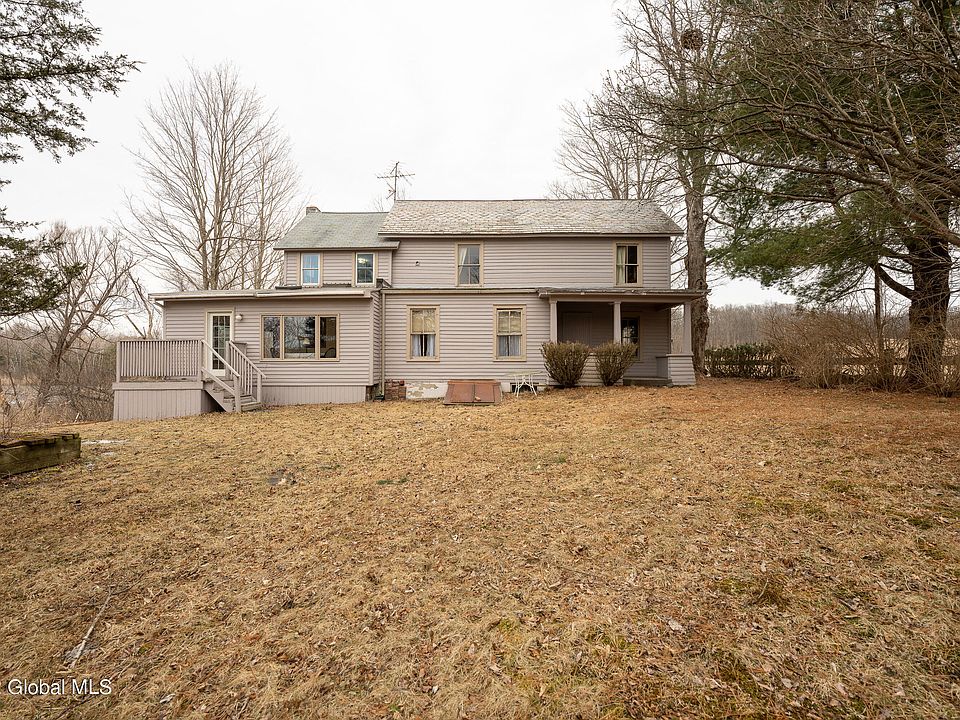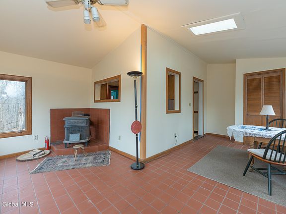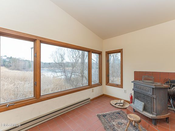 Turn of the century 2 story 3 br/2 ba farmhouse on 1+ acre surrounded by nature, private pond, hillsides, forests, fields & wetlands at property edge. Large sunlit windows allowing views of land, water & wildlife. 1st flr has mudroom entrance from driveway, hw floors & unique period details, i.e. porcelain door knobs, large master bedroom, bathroom with clawfoot tub, living room and dining/sunroom w/wood stove. 2nd flr. Can be separate AirB&B/rental unit for extra income with private entrance to huge studio/br/lr combo & private bath. Laundry room and kitchen on both floors. Detached 2 car garage/barn has work/storage rooms and loft & Solar panels (purchased 2019). Low maint slate on most roof with asphalt or rubber on additions. Room for a deck overlooking the lake! 1yr Home Warranty. 2022-07-05