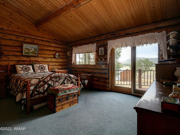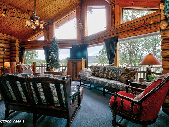 Amazing views of the mountains and wildlife from this spacious 3 bdrm log cabin on 3 acres of cross fenced horse property. The floorplan allows for guests to stay on a separate floor with their own living areas, but this is really more than a cabin... boasting walk-in closets for all three bedrooms, a large pantry and utility room and an oversized 3 car garage, this could easily be your new home, all in the quite mountain community of Nutrioso.