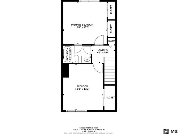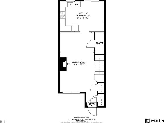 - Total interior livable area: 848 sqft
