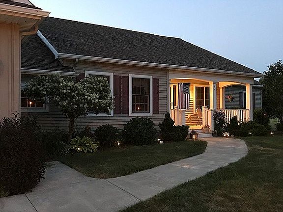 PRICE REDUCED! Summer's coming and this beautiful home can be yours to enjoy! Have breakfast on the deck and watch the sunrise. Evenings on the front porch give a view of spectacular sunsets! Custom-built for current owners in 2008. 4 bedrooms, 2 ½ baths in the Village of Fredonia on a cul-de-sac. Lovely traditional, spacious ranch-style home with an open floor plan on a large private lot, with vineyards in back and a view of the Arkwright Hills. This house was designed for comfort and relaxation as well as family gatherings and entertaining. It's very low-maintenance inside and out, so you can spend more of your time doing the things you love. The kitchen is spacious with plenty of cabinets and a walk-in pantry, easily accommodates two cooks, and is a gathering place. The 4’ x 5 1/2’ island has its own vegetable or bar sink and seating for two. Plentiful counter space includes a raised portion that accommodates three stools. Oak cabinets are ceiling-height with pull-out drawers and soft closures, and include a built-in wine rack. Kitchen appliances stay. Tile backsplash in kitchen features stones from Monet’s Garden in Giverny, France. Breakfast nook has large bay window overlooking back yard and a stunning 180-degree view, also a convenient backdoor and mudroom to patio. Large sunny dining room (13’ x 14’) with hardwood floor and lots of light from two windows. Great room (23’ x 19’) features a corner, stacked veneer stone gas-burning fireplace and vaulted ceiling with beams. Sliding Pella doors lead directly onto back deck. A pocket door separates the great room from three bedrooms and a full bath. Front entry foyer opens to a beautiful library with hardwood floor and custom-built bookshelves and cabinets, making a quiet place to sit and read. En-suite (22’ x 15’) with a large walk-in closet and a separate reading area that could alternately be used as a dressing or exercise area. A bay window looks out on backyard. The master bath includes double sinks, Swanstone countertops, soaking tub, custom Swanstone shower with bench, and an enclosed commode with pocket door. Off of the kitchen is a very roomy entry hall from the garage, providing access to a convenient half-bath, large closet and generous first-floor laundry room. The laundry accommodates a washer, dryer, stainless sink, freezer, cabinets, and drop-down ironing board. An open split and carpeted stairway with landing leads to the basement. Basement is clean and dry with 8-foot ceilings, two large windows, and Superior pre-fabricated, insulated foundation walls that are ready to finish off. Plumbing is also available in basement should you want to add a bathroom. Backyard is fenced. Beautifully landscaped- will be your piece of paradise! Composite deck and railings (maintenance-free) with Kohler awning and stamped patio. Far end of patio also features a Hydropool hot tub. Energy Star efficiency, tankless hot water, forced air heat with central AC and integrated humidifier. Natural gas line in place for grill. Architectural (30-years) shingle roof. Covered front porch with composite material floor, steps, and railings. Vinyl exterior, for a low maintenance house. Very energy-efficient (see utilities at end). Floors are carpet, hardwood, laminate, and ceramic tile. Custom 6” baseboard moldings throughout, and crown moldings in kitchen, dining room, and great room. Loads of closet and cabinet space. ADA hallways and doorways. All Pella windows (double-hung) and exterior doors. Integrated sound through great room, kitchen, master suite, and back deck. 2 ½+ car oversized attached garage (26’ x 30’) with a dog kennel off back of garage. Village water and sewer, Fredonia Schools, great neighbors! Taxes (2020): County/Town: $2792, School: $5778, Village: $1833 Average Monthly Utilities: Gas: $62, Electric: $105, Water: $48 Call for an appointment for a private showing: Barb at (716) 410-5930