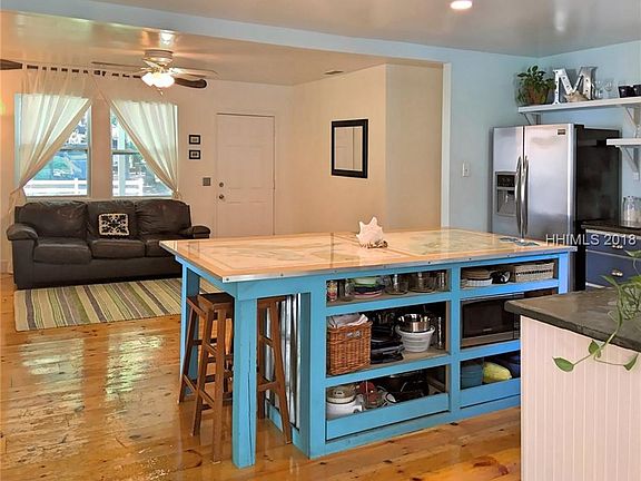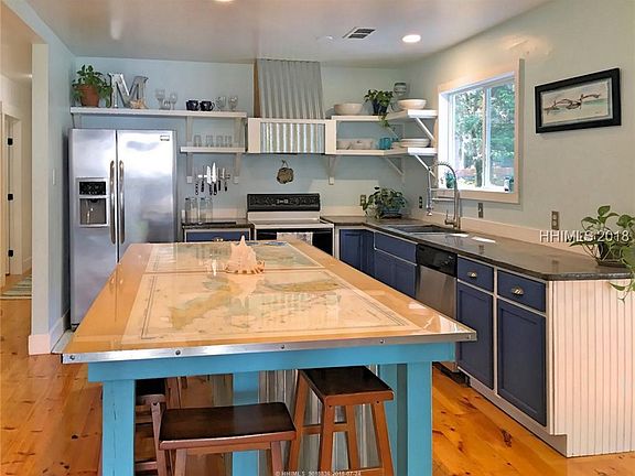 A rare find! Located 2nd row to the May River, this cute 3 bedroom, 2 bath cottage looks like it popped right out of Key West, FL. If you are looking for one of those places that epitomizes the "Bluffton State of Mind", you've found it! Renovated in 2018 with new large (20 x 24) deck, Sunporch, refinished hardwood flooring; new carpeting, new metal roof, new windows, & brand new bathrooms. Large fenced yard great for entertaining, a big tree house for the kids and park your boat in your own yard! Large detached 2-car garage with workshop. 600 lbs. Ice Machine included for boaters. Extensively landscaped with native plants. A must see!