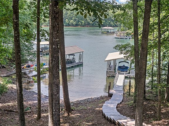 Located in Keowee Key, this is an extraordinary opportunity to own your own waterfront home with a private covered dock nestled in a beautiful bay. If you are intent on enjoying The Keowee Life, this four-bedroom home awaits you. Hardwood floors extend throughout the main level Great room, dining room, kitchen, and breakfast room. The stone-faced fireplace anchors the entertaining area. Enjoy the 3-season porch that overlooks Lake Keowee with open decks for sunbathing and grilling. Transom windows facing Lake Keowee on each side of the fireplace and palladium window in the Great room floods the space with natural light. This orientation allows you to enjoy the spectacular sunsets on Lake Keowee. An office and a powder room as well as the Master Bedroom ensuite and laundry room allow you to live entirely on the main level. The terrace level features three additional bedrooms and two-full baths. The rec room has a kitchenette and the adjoining game room is home to the pool table, which conveys. A workshop and abundant storage completes the space on the terrace level. The 2-car garage provides additional storage if desired. The back yard is a gentle walk to your covered dock. Located in the Keowee Key community, coveted gated, golf, tennis, and pickleball community, the state-of-the-art fitness center, waterfront walking trail, three pools including the Lakeside pool at the North Marina are just some of the sought after amenities. Dinner at the Clubhouse and The Bistro is ideal for breakfast and lunch as well as a popular gathering space following your golf outing. The Keowee Life awaits you. Live it. Love it. Lake it. Buyer/buyer agent to verify all information including measurements if that is important. All information is believed to be correct. This community is governed by CCR’s, a Property Owners Association, and a Board of Directors. Keowee Key has a one-time fee paid by the buyers at closing. Earnest Money deposits are held by Bradley K. Richardson, PC.