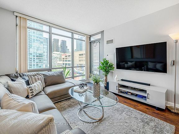 Close to 700 sq ft Of Living Space (Includes 37sqft Balcony).Amazing Layout With Full Private Den Which Could Easily Be Converted Into 2nd Bedroom. Lots of Natural Light Beaming From Floor To Ceiling Windows. Access To Balcony From Living Room With Views Of CN Tower & Rogers Centre. Living Dining Room Allows For 4 Seat Dining Table. Access to **30,000 Sq Ft Super Club** containing BBQ Area, Internet Cafe, Games Room, Gym, Running track, Full Basketball Court, Party Room, Roof Terrace, Squash, Tennis, Indoor Pool, Hot tub, and Sauna. Steps to TTC, Rogers Center, CN tower, Ripley's Aquarium, Scotiabank Arena, Harbourfront and more.