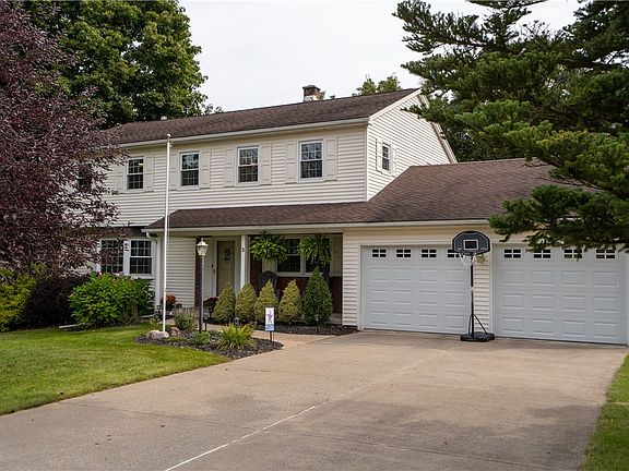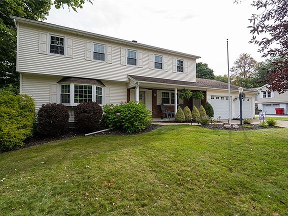 Charming Colonial for Sale in Phelps…Welcome to 3 Needham Ave! This 4 BR, 2.5 BA Home Offers 2,080 Sq Ft of Meticulously Maintained Living Space. You’ll be Greeted by a Storybook Exterior on 1.10 Acre Park-Like Lot w/Front Porch. Entryway Leads to Light Filled Living Rm w/Picture Window. Glassed Drs Open to Family Rm Feat Gas FP w/Stone Surround & Gleaming Hardwoods. Spacious Eat-in Kitchen Boasts NEW Appliances, Disposal, LED Ceiling Fan & Moveable Island. Sliders Open to GORGEOUS Sunroom w/Glassed Walls, Vaulted Ceilings & Skylights. Step Onto Trex Deck Overlooking Treed Lot w/NEW Firepit & Gardens…Perfect for Entertaining! Formal Dining Rm & Updated Powder Rm For Convenience. 2nd Flr Offers 4 Generous Sized BR’s Incl Primary w/En-Suite BA & Family BA w/Radiant Flr. TONS of Updates–NEW Fixtures, Hardware, Faucets, LED Ceiling Fans & Some Plumbing! Smart Home Features-Solar Security Cameras, Nest Doorbell, Yale Smart Lock, Nest Thermostat & Carbon Monoxide/Smoke Detectors! Full, Dry Basement Offers NEW Sump Pump w/Battery Back-up, NEW H20, Furnace, C/A ’12 & Radon Mitigation System. 2.5 Car Garage! Shed w/Concrete Slab! Seller Purchased Home Warranty for Peace of Mind…Don’t Wait!