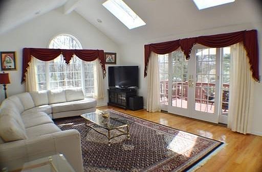 This beautiful, young (1987), oversized, custom-built split home, with many luxury upgrades, is situated on a huge lot at the end of a quiet cul-de-sac neighborhood. Pride of ownership shines throughout this tastefully expanded and meticulously maintained home.The grand double doors entrance, with its shimmering crystal chandelier, opens up to a spacious and bright living room complete with hardwood floors and recessed lights, and providing a open floor plan . All of the bedrooms are large, and the bathroom is beautifully updated.The luxurious custom built kitchen was recently updated w/ granite counters, tile floor, breakfast bar, stainless steel appliances, and Kraftmaid high-end maple cabinets with soft close drawers and pull-outs.A glorious 1st floor great room addition is a showstopper with its cathedral ceiling, recessed lights, hardwood floors, skylights, Anderson Palladian Windows and double sliding doors. Great room opens up to the large deck that overlooks a beautiful yard.
