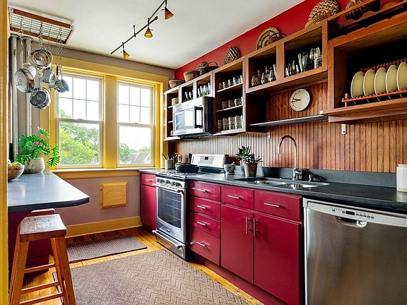 OFFER ACCEPTED - OPEN HOUSE CANCELED. Set on a sleepy side street in the Baldwin neighborhood, just two blocks from Porter Square, this top-floor two-bedroom blends classic charm with joyful color and natural light. Oversized windows, high ceilings, oak floors, and vintage trim anchor a gracious floor plan with north and south exposures. The living room centers on a wood-burning fireplace with period mantel. In the dining room, a bay window with stained glass, open shelving, and cheerful yellow trim bring elegant warmth. The kitchen’s open layout and curated details are perfect for everyday living or entertaining. The tranquil main bedroom feels like a retreat, with soft tones, views, and room to breathe. The second bedroom—now a vibrant, custom-outfitted library and office—is an ideal work-from-home hideaway. Professionally managed, long-established association with a patio, gardens, bike room, and private storage. Just 2 blocks to Porter Square / Red Line, 1 mile to Harvard Sq.