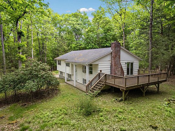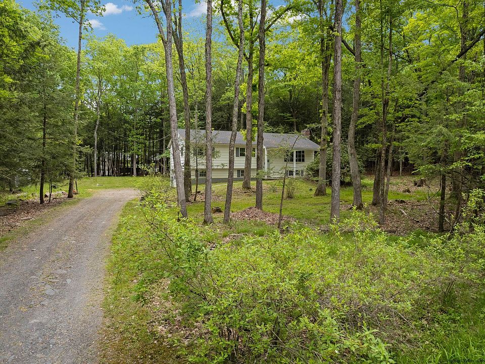Calling all visionaries and dreamers! This remarkable property, resting upon 1.3 acres of untapped potential in the heart of Woodstock awaits your creative touch. Tucked away on a quiet road amidst a captivating tapestry of mature trees stands a 2000+ sq ft raised ranch just brimming with possibilities. Step inside this home and you will find hardwood floors and tons of natural light. The pellet burning stove is an undeniable focal point, radiating both warmth and character throughout the living area. The home boasts an assortment of modern comforts, including two mini-split units, ensuring a perfect climate all year round. A primary suite awaits your creative touch, longing to be transformed into a peaceful retreat. Two additional light-filled bedrooms offer ample space and a blank canvas to make your design dreams come true. Downstairs, a finished walk-out basement awaits your imagination. This versatile space, complete with a full bath and a charming wet bar holds endless possibilities. Transform it into an inviting in-law suite, a creative sanctuary or an entertainment paradise—it's all within your grasp. With an oversized 2-car garage boasting abundant storage space, this residence effortlessly combines functionality and practicality. A large deck spans the side of the house, ideal for relaxation and connection with nature. Whether you seek a weekend retreat or a permanent residence, this property offers tremendous value and opportunity.