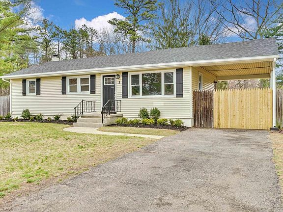 Remodeled 3 bedroom 1 bath ranch home with full basement & covered carport. This home features a new boiler, a new septic system, a new roof. The kitchen features beautiful stainless steel appliances new cabinets, counter tops and back splash. The location is fantastic with a private backyard that backs to the woods. Close to the major highways, and not so far from the Jersey Shore Beaches.This is a must-see home.