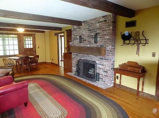Charm throughout this authentic Royal Barry Wills Cape. Newer roof with copper trim. Kitchen has wide pine floors, skylight, utility closet. brand new dishwasher and refrigerator and dining area with sliders to screened porch. Beams in Kitchen, living room and fireplace mantel from old tobacco barn. Front to back living room/dining room combo with wood burning fireplace and built in bookcase, Master bedroom has 3 closets with stairs to attic in one closet. Paneled rec rm. with fireplace. Newer furnace, oil tank and hot water heater approximately three years old. Newer 200 amp electric service. Newer washer and dryer included. Spacious screened porch overlooks beautiful, private rear yard and has door to patio.