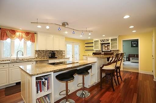 Spacious, renovated colonial on bucolic acre plus lot with plenty of play space. Updated oversized kitchen with off white cabinetry, stainless appliance, granite and Brazilian cherry wood floors- custom island is one of a kind! Family-sized cathedral ceiling family room with fireplace, spacious living room/dining room and office (all with hardwood floors), 1st floor laundry, well proportioned bedrooms on 2nd floor plus updated master suite with access to nursery! Professionally finished lower level is perfect rec room or man cave! Terrific location!