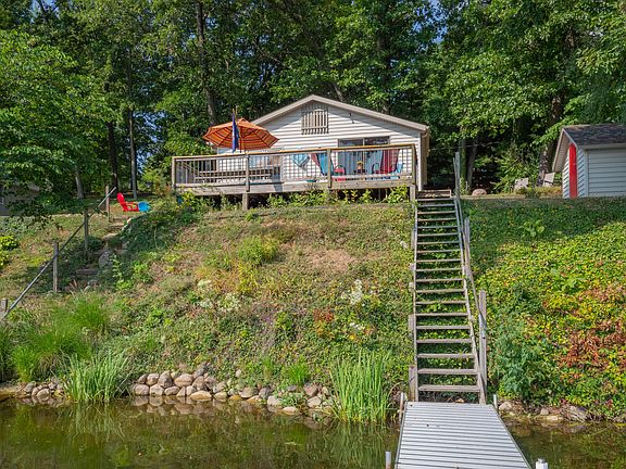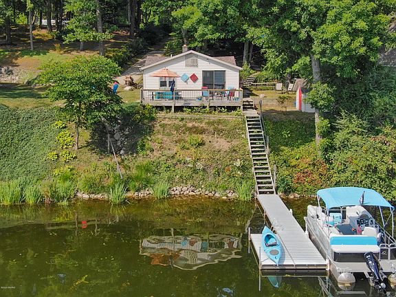 You will be impressed by this clean, dry, and cozy two bedroom, one bath, year-round lake cottage on over half an acre, with 63ft of frontage on All Sports Wilkinson Lake, which opens into the greater Chain-O-Lakes, giving you navigable access to Cloverdale, Jones, and Mud Lakes. Enjoy outstanding fishing and opportunities to see a myriad of wildlife, including bald eagles. Tons of open space on the property allows for ample parking, recreation, campers, snowmobiles, or even additional construction. New Roof in 2013 and new well in 2012. A nearly 300 sqft deck overlooks the water and gives you vast, dramatic views of the lakes. You'll feel like you're truly out in nature, yet you're only a three-mile drive from groceries, restaurants, the post office, and more. The location makes it convenient to Grand Rapids, Kalamazoo, Hastings, Allegan, and Battle Creek. Beautiful sunrises, cool shaded evenings, and views of the Milky Way can all be yours along with the creature comforts that will