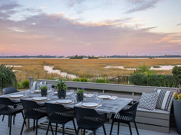 Classically Refined, Eminently Comfortable, and Truly Breathtaking - this marshfront family home provides sweeping water and downtown views from most rooms and an oversized lot for unprecedented privacy and outdoor enjoyment. With five total bedrooms, including dual primary suites, an informal and formal living room, a formal dining room, and an eat-in kitchen, this property offers every modern convenience imaginable. The gourmet kitchen has been thoughtfully renovated and opened to the den for an ideal entertaining space. High-end appliances include a Thermador gas range, dishwasher, and U-line pellet ice maker. An additional refrigerator sits in the expansive mudroom and laundry area, which showcases marble countertops and a sizable locker-style drop zone storage for stowing bookbagsand muddy boots. Off the drop zone is a spacious guest suite with a full bath, perfect for long-term guests. The back deck overlooks an expansive marsh vista that rivals any views west of the city. The large backyard provides plenty of room for a pool comfortably within critical line setbacks. Upstairs are dual primary suites with water views and two additional guest rooms with a renovated jack-and-jill bath. The larger primary features a sitting room, walk-in closet, and spa-like bath with a soaking tub and glass shower. A secondary primary offers a private en-suite bath, a spacious waterfront office, and four closets for ample storage. Your backyard will become a true delight during the summer with a front-row seat to the Riverdogs fireworks displays and unbelievable sunsets all year round. This home is spacious, comfortable, and welcoming and offers a unique Lowcountry lifestyle a mere seven minutes from Downtown Charleston.