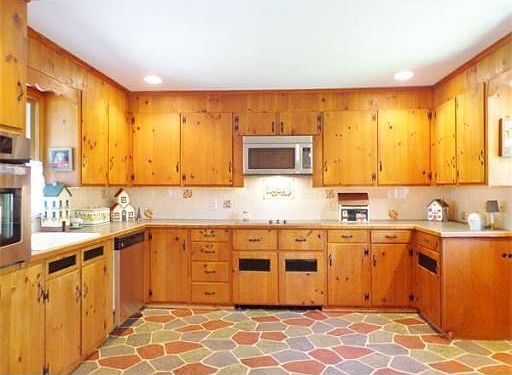 Just Fabulous L- Ranch with only two owners to this home it has been meticulously kept! This home features a spacious kitchen opening to dining area w/ brick hearth fireplace and wide pine flooring w/ beamed ceilings, formal living rm w/ fireplace, three bedrooms all with gleaming hardwood flooring and crown molding. Most exciting about this home is that the lower level offers a fantastic 27 x 17 rustic post and beam, cool feel of a family room w/ oversized windows, brick hearth fireplace and potential bar area for entertaining! Updates include all new stainless steel appliances (2014), freshly painted exterior ( 2013), furnace (2011) & 30 yr roof (2001). (APO) Best of yet, town water, town sewer, walk out basement to private wooded backyard & heated two car garage... Don't Miss Out on this one, it's just a beauty! Sold as is (APO)