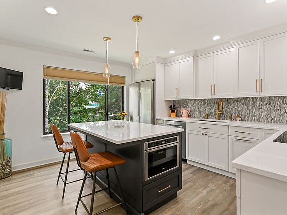 Welcome to Oakwood Commons. This spacious & updated 2BR, 2.5BA townhome is a hidden gem tucked in one of Norwalk's most sought after communities. Step inside to a completely renovated kitchen equipped w/all-new stainless steel Bosch appliances including refrigerator, dishwasher, microwave, wine fridge & induction stove. A granite countertop island anchors the space, complemented by a coffee bar, tile backsplash, recessed lighting, plenty of cabinetry & a large pass-through w/a view into the main living area. Just off the kitchen, the dining room offers 2 versatile seating options, including a built-in countertop ideal for high-top seating, modern light fixtures & tons of natural light. The living & dining area is enhanced w/new flooring throughout, a custom built-in desk w/shelving, a wood-burning fireplace w/updated mantel & glass sliding doors w/electric shades leading out to the deck w/views of the pool - a perfect place to enjoy your morning coffee. An updated powder completes the main level. Upstairs, the Primary BR offers generous space, 2 closets w/custom built-ins & a completely renovated ensuite FBA w/tiled walk-in shower & vanity. The 2nd BR also includes a closet w/built-ins & FBA ensuite. Other features include full-size W/D on the upper level, private storage room & garage. Conveniently located w/in walking distance to Merritt 7 train, as well as quick access to Merritt, I-95 & nearby shops, restaurants & everyday conveniences. Schedule your showing today!