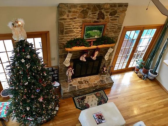 Beautiful Park Like Setting with 12.9 Acres! Awesome views, has a 2 Horse stalls in small barn and about half of large pond is with property! Charming 5 Bedroom home , 3.5 baths. Full walkout basement features huge family room with lovely tiled bar area, buck stove, bedroom and bath. Home features Cathedral ceilings front and back staircases, fireplaces formal dining room, eat-in-kitchen and a 2 car attached garage. For summer living above ground pool , hot tub and deck.