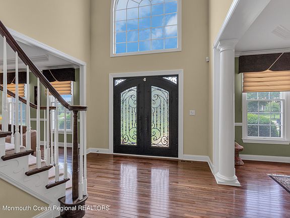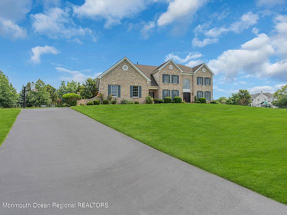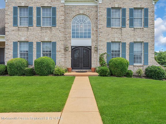 BACK ON THE MARKET! Prime cul-de-sac lot in Toll Bros. Clayton Farms. Enter 2-story foyer through NEW double steel doors, overlooking winding staircase, glistening h/w floors. Newer SS appliances, except refrig. in kitchen. Spacious rooms through-out! Each bedroom w/it's own private bath! 3 bedrooms w/walk-in closets. 4th bedroom large closet. See the value throughout this home. Finished basement (approx. 2000 sq.ft) w/high ceiling. (2) newer HVAC systems. Newer GENERAC, 3car garage w/oversized midsize entrance, 16-zone sprinkler sys. Built-in sound sys., approx. 1,000 sq. ft. beautifully paved patio! Central vac., Security/monitoring sys., + Ring doorbell. Close proximity to stores, restaurants, Routes 537, 9, 33, 18. Route 195 about 15 minutes away. Public transit easily accessible.