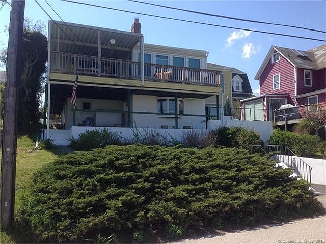 4/5 br home, two complete separate living areas in Crescent Beach. Covered deck overlooking Niantic Sound and McCooks beach. Beautiful panoramic WATERVIEWS. New energy efficient windows. 1-car Garage. Oversize lot w/ driveway provides parking for several more cars and RV or boat.