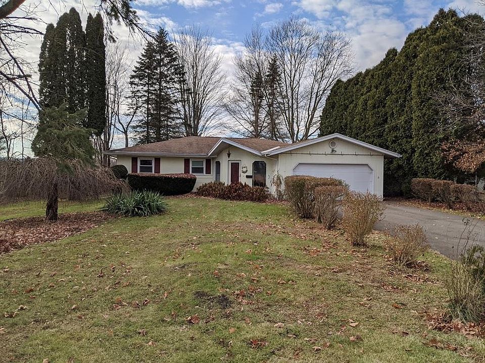 This 3 bedroom ranch home offers plenty of living space to enjoy. Large eat-in kitchen, formal dining room and nice size living room w/ gas insert fireplace. Bedrooms are also good size. Shower in the master bathroom needs repair. Enclosed porch and deck off the back of the home. Almost 1/2 acre treed lot. House priced below assessed value. 2 car attached garage. Roof approximately 8 years old. House being sold in "as is" condition.
