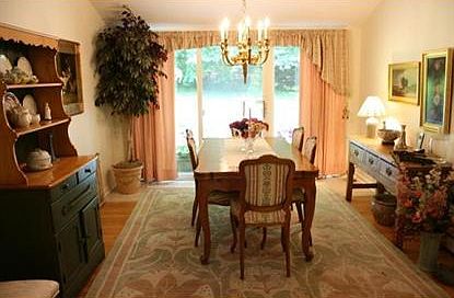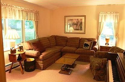 Elegant ranch on beautifully landscaped 2AC w/lovely curb appeal. Large LR w/ stone fireplace, formal DR w/slider to deck, open kit/FR, full bsmt. Pristine, lovely, light and bright ! Garage same level Kitchen open to the family room, wooden deck off dining room, stone walls with beautiful landscaping. All one level living with direct access from the garage.