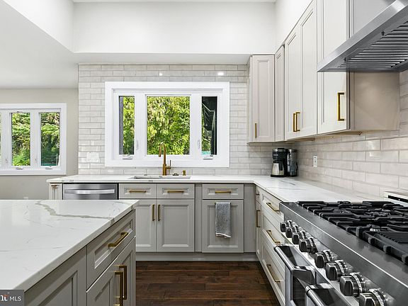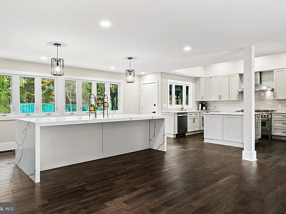 Originally a custom-built home, this classic contemporary situated on a cul de sac has been completely renovated with amazing updates throughout! The foyer opens this home to a fabulous open concept floorplan pulls the whole first floor together. Gorgeous dark wood flooring throughout the first and second floors as well as so many windows here, allowing in all the natural light. From the foyer, the formal living room is to the left, and to the right is where the flow begins. The formal dining room area opens to the huge gourmet kitchen, large island, quartz countertops, and brass fixtures keeping with the modern theme, as well as shiny subway tile backsplash and stainless-steel appliances complete the stylish look. A versatile extra kitchen/mudroom is off through a door here which also leads to the garage door. As the kitchen opens to the family room, a gas fireplace is centered between these two rooms. The family room features built-ins for your television and displays with sliders out to the bright and beautiful sunroom. This sunroom shows off views to the awesome backyard featuring patio, covered patio, inground pool, and tennis court. Finishing this floor is a powder room and doorway heading down to the finished basement. You will love all the room it has to offer! Light wood flooring throughout most areas with brand new carpeting in the larger room. There is a full bathroom with gorgeous tiling and double sinks, a sauna, a small office room as well as a medium-sized room with a doorway leading to the upstairs sunroom. Back to the foyer taking the stairs, grab onto the trendy iron and wood railing as you venture to the second floor. Upstairs of this home has FIVE bedrooms, most with vaulted ceilings! Perfect for a large family. The primary suite has a great walk-in closet and stunning bathroom featuring double sinks, a soaking tub, glass, and tile stall shower with bench and marble tile floors. The other four bedrooms are a great size with a ceiling fan in each. A full bathroom and laundry room finish this floor. This home has been completely redone from top to bottom, new roof, new heater, new hot water heater, brand new kitchen, new baths, new hardwood flooring and so much more!!