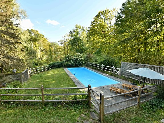 Bring the outside in, with this charming cottage that is surrounded by natural beauty and exemplifies country-road living. This quaint gem provides a bevy of unique experiences on one property - the sounds of its steady, cascading stream; the feel of sitting up among the trees on its peaceful deck; and a cooling lap-swim in the hot summer sun. The house and property is wrapped with all-day sun and offers several outdoor bluestone terraces to enjoy the hillside landscape. Inside, the open kitchen anchors a free-flowing dining and living space that spills easily to its outside dining deck. In the winter, curl up in front of a stone fireplace in a high-ceiling living room, adorned with exposed beams. Situated on one of Garrison's historic dirt roads, this warm cottage is steps away from the Appalachian Trail, and offers tranquil living, beautiful views, privacy and easy access to the train station for commuters and weekenders alike.