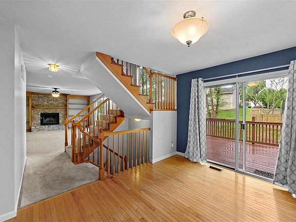 built-in bookcases & wood burning fireplace w/raised brick hearth. Family size kitchen offers moveable center island, built in microwave, plenty of counter & cabinet space. Upstairs retreat to the spacious vaulted Owners Suite w/walk-in closet & ceiling fan. Owners bath has a step in soaking tub, double-bowled vanity & separate shower. 3 large secondary bedrooms share a hall bath. Lower level offers rec. rm, half bath, sleeping room or home office & plenty of storage space. Sought after subdivision w/3 pools, clubhouse, sports court, walking trails, and lakes. Easy access to HWY 40 and 364.