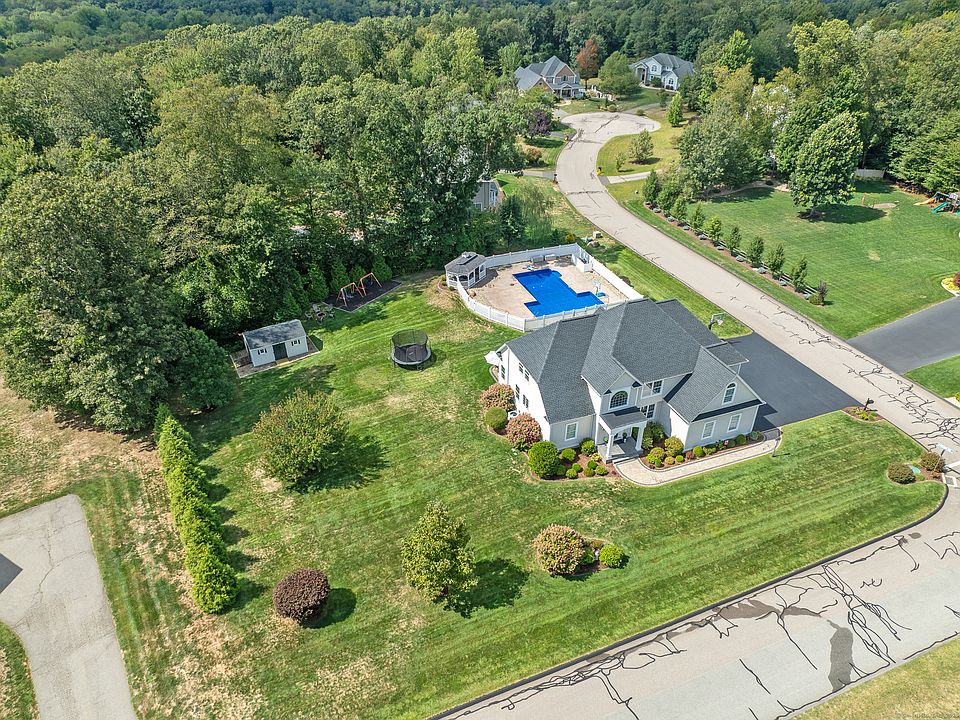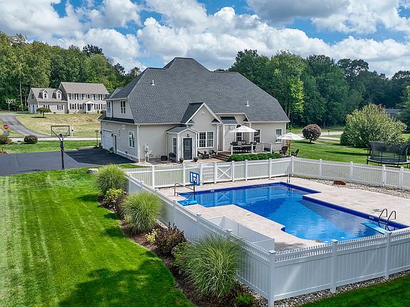 Wow! This is the one you've been dreaming of! A stunning 2009 Colonial in Whispering Woods with over 3,400 sq. ft. (and additional 1300 sq ft in the lower level) on nearly an acre, offering every feature you've been hoping to find in your next home. The first floor is built for entertaining with an open layout that brings together the kitchen, living room, eat-in area, and formal dining room as the central hub. To one side, the primary suite includes a separate bath/shower and walk-in closet. To the other, a dedicated office, cozy den, and full bath provide flexible spaces that fit today's lifestyle. The finished lower level adds a huge rec room with wet bar, second office, laundry room, and two more versatile rooms for a gym, media room, or hobbies - plus exterior stairs leading directly to the backyard and pool. Upstairs you'll find four spacious bedrooms, all with impressive closets, and an additional full bath. The backyard is a showstopper with a custom-designed 18'x40' pool featuring a shallow end, deep end with cuddle cove, diving board, and deck jets. Pair that with the carefree gazebo, rear deck and patio areas, fire pit, play area, and inviting yard, and you'll feel like you're vacationing at home all summer. This home offers so much more than we can capture here. It's one you must see in person. With so much to offer inside and out, this just might be the home where your next chapter begins!