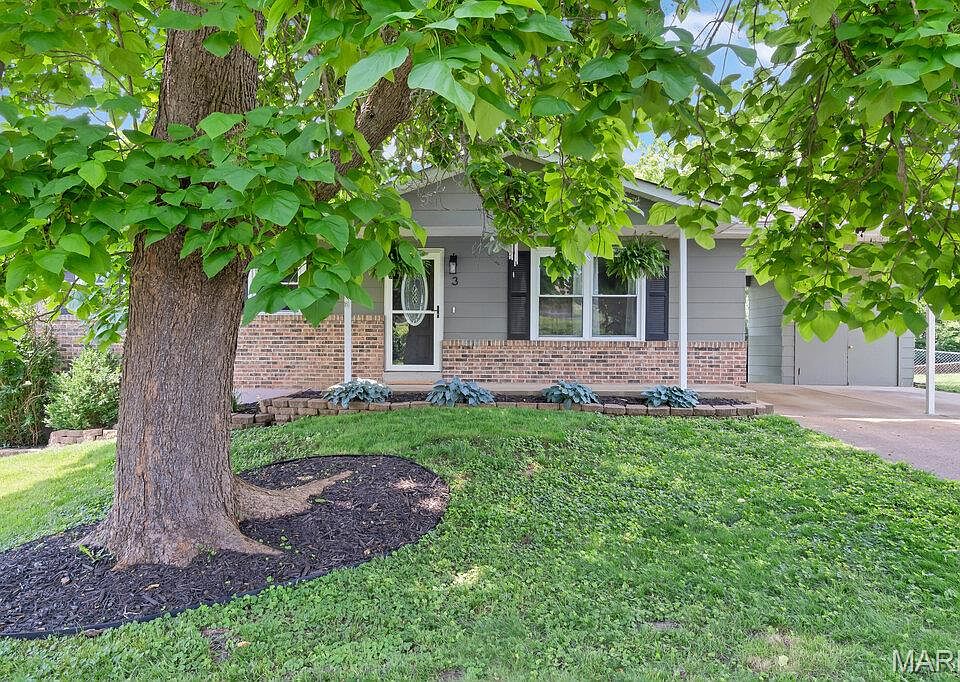 This stunning 3-bedroom, 2-bath, updated home in the Rockwood School District is what you have been waiting for! The covered front porch welcomes you right away. This stylishly appointed home boasts an open floor plan, vinyl plank flooring, updated baths, and an updated kitchen, along with a huge fenced yard. There is a 2-car covered carport with a storage area. The newer windows allow an abundance of light throughout this home. The large living room and primary bedroom feature a custom shiplap wall. The kitchen has a newer backsplash, shelving, stainless steel appliances, and newer countertops. The 3 bedrooms have ample closet space. The finished lower level enjoys a sleeping area/office and a playroom. There is a full bath and a large walk-in closet, too! Enjoy the views from your covered deck overlooking the fenced back yard with mature trees. Newer Hot Water Heater! Start enjoying life on this quaint, private street that is tucked away, yet so close to all you need!