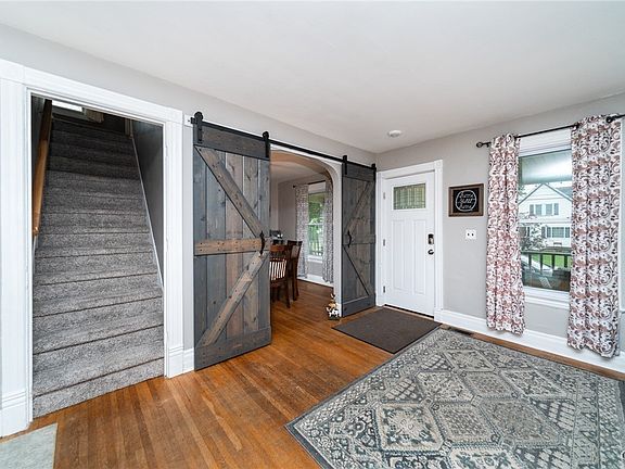 Step inside to discover a spacious living room adorned with hardwood floors, perfect for both everyday living and entertaining. The formal dining room, enhanced by stylish barn doors, provides a touch of rustic charm and versatility for gatherings.