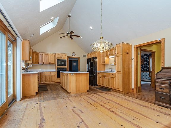 - Features: Skylight, Ceiling Fan(s), Vaulted Ceiling(s), Flooring - Wood, Kitchen Island