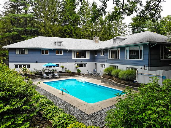 Your own slice of paradise! Gracious living spaces include large, bright living, dining and family rooms, all w/6" hickory flooring & views of the pool, majestic oak tree & private backyard. Entertain in a well-equipped custom kitchen w/waterfall quartz island. Quality materials throughout. A huge owner suite hosts an en-suite bath w/ glass/tile shower, soaking tub, & art glass lighting. Plenty of huge windows throughout flood this well laid out home with natural light. A lower lvl den walks out to beautifully landscaped outdoor entertaining spaces, in ground pool & large surrounding patio!
