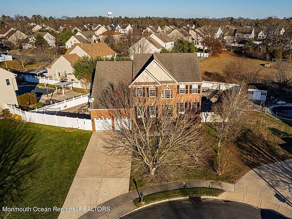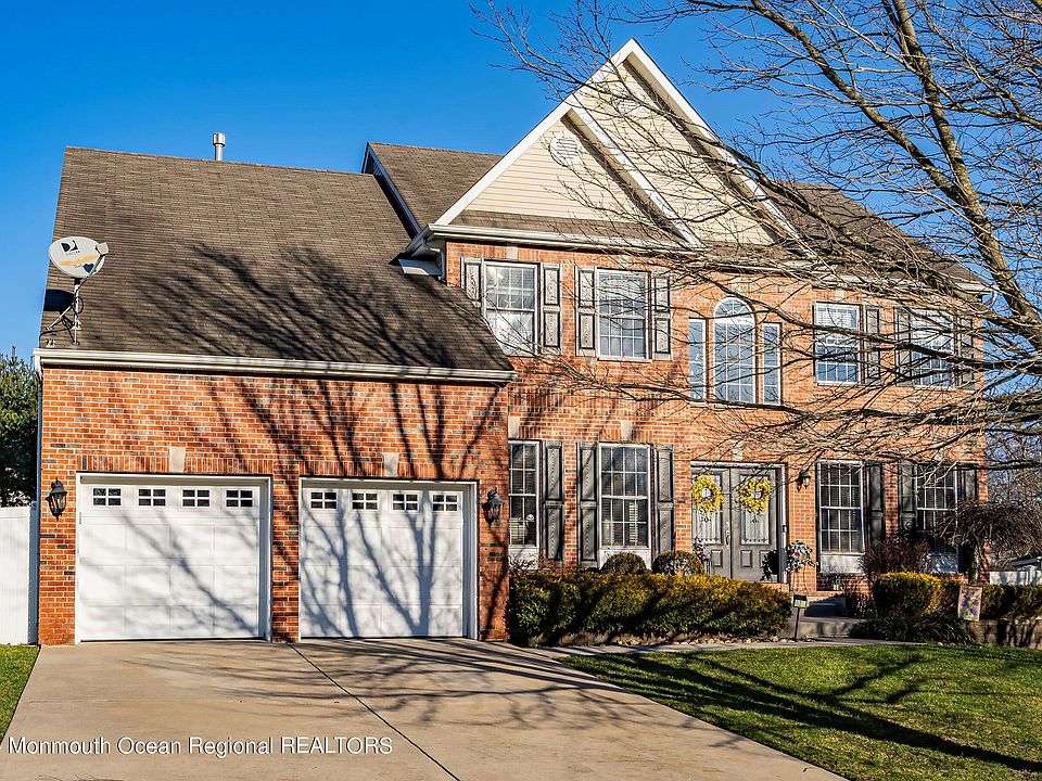 Stunningly beautiful Manchester Model in the desirable Oak Crest community. Beautiful curb appeal and set on a prime cul-de-sac location. This stunning brick front colonial features a finished basement, large paver patio & an inground pool. Step inside this welcoming 2-story foyer with a double-door entry, custom wood entry floor, and chandelier with an Aladdin lift. French doors lead to a 1st floor office; adjacent to a half bathroom w/a pedestal sink & separate laundry. The heart of this home is the newer custom eat-in kitchen w/cream, furniture-style cabinets, granite countertops w/an ogee edge, huge center island, an eye-catching statement hood over a 6-burner commercial gas stove/oven, pull-out spice draw, pantry & more! Family rm w/vaulted ceiling, linear fireplace, wood floors & 2nd staircase. Large Master Suite w/ vaulted ceiling & newer master bathroom with a soaking tub flanked by pilasters, 2 Master Vanities, sep. shower, huge walk-in closet w/built ins. Three additional nice-sized bedrooms. Each bedroom features double closets! Center hall bath features a tub/shower combo, sink vanity & make-up vanity. Huge, finished basement living space (not included in the square ft) boast a bonus room (currently the owner uses it as a guest bedroom), pool table area and 2nd family room. Ig sprinklers in the front yard. The backyard is magical, with a large rectangular inground, heated, saltwater pool, elephant loop lock cover, pool sweep. Shed, barbecue grill, garage fridge & dining room table and chairs included. Even an outdoor shower w/hot & cold water. This home has it all!