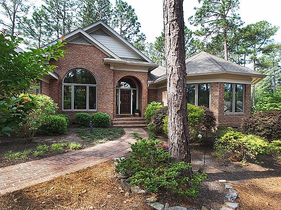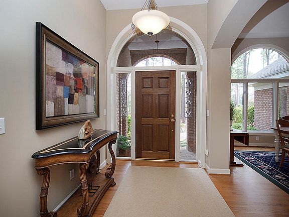 This is a classy, comfortable home with many architectural details that make it special. Rounded archways in the Foyer lead to a Formal Dining room with trey ceiling and a Great Room with gas fireplace. Framing the fireplace are lighted art niches. French doors lead to a Carolina Room with brick accents and Eze-Breeze windows for 3 season living. The Kitchen has been remodeled with granite counters, stainless steel appliances, breakfast bar. The Family Room/Study has a lovely addition with rounded window & entertainment area. The Master Bdrm & Bath have been remodeled with granite counters and pretty tile. The 2 guest bedrms are a split bdrm plan with remodeled bath. Backs to 1.5 acres of wooded greenspace!One level living at its best. Please give ample notice to show. Thanks
