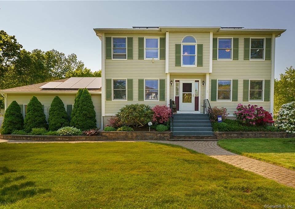 Gorgeous grounds at the culdesac is the setting for this move in ready Colonial in the sought after Castle Hill Subdivision. Conveniently located within minutes to I-95,easy commute for those at ELECTRIC BOAT, USCGA or the US Navy Base. Entertaining floor plan featuring a generous sized kitchen with sleek granite countertops &breakfast bar plus informal dining area. Comfortable family room with plenty of space for the big screen TV. Formal dining room is currently being used as a home office &can easily be converted back. Ideal for holiday entertaining. Maintenance free laminate and hardwood floors throughout the first floor. Convenient first floor laundry/mudroom too. Upstairs features the sleeping quarters with generous sized master suite with a full bathroom and walkin closet for those with an extended wardrobe. 2 other bedrooms share another full bathroom. Need more living space? Check out the finished lower level ideal for a home gym, hobby area or multi media room. Bonus: walkup to the garage from the basement for easy access. Enjoy dining 'AL FRESCO' this summer on the deck with privacy walls. Dip into the HOTTUB anytime of year for fun or therapeutic needs. Got pets? Fenced in yard is perfect for your furry friends. Lush grounds with sprinkler system. Sit around the roaring firepit after dinner with friends or play a game of horseshoes! Extra paved parking area ideal for parties. Efficient Kerosene heating system, split a/c along with solar panels power this home.
