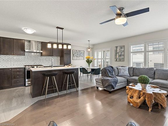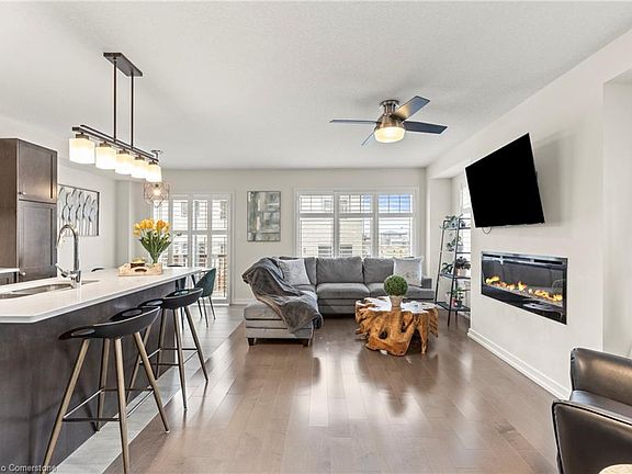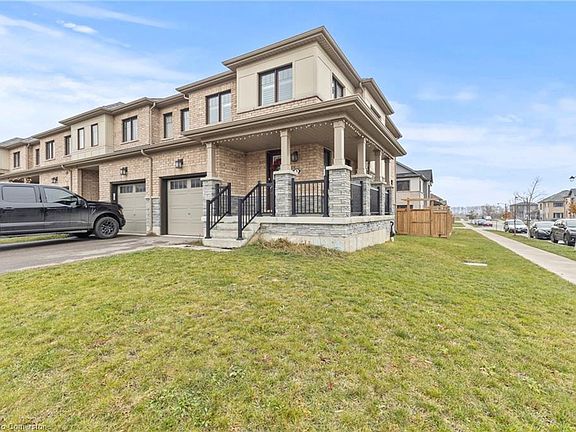 Discover the perfect blend of style, comfort, and convenience in this stunning all-brick, 2-story freehold townhouse. Nestled in the highly sought-after Stoney Creek community, this special end-unit home offers 3 beds, 2.5 baths, and a host of thoughtful features, making it ideal for families or anyone looking for a warm and inviting place to call home. As you step onto the charming wrap-around porch, you’ll immediately notice the abundance of natural light streaming through the large windows with California shutters. The main floor features an open-concept design, seamlessly connecting the living, dining, and kitchen areas. Cozy up by the electric fireplace or enjoy cooking in the beautifully designed spacious kitchen, complete with a herringbone backsplash, quartz countertops, pantry, kitchen island and high-end stainless steel appliances. Upstairs, the spacious master bedroom offers a peaceful retreat with a walk-in closet and a luxurious 4-piece ensuite featuring quartz countertops and oversized soaker tub. Two additional well-sized bedrooms and a modern 3-piece bathroom complete the upper level, providing ample space for family or guests. The backyard is perfect for entertaining or relaxing, with a stained deck and a fully fenced yard. Additional features include wood stairs with iron spindles, upgraded floors throughout no Carpets, main-floor laundry, direct garage access, and reinforced light fixtures, Conduit pipes for TV cables. The unfinished basement serves as a blank canvas for your future expansion ideas, whether it’s a recreation space, a home office, or extra storage. Located close to excellent schools, sports complexes, shopping, and with easy highway access, this home offers convenience at every turn. Nearby parks, including Albion Estate Park, Battlefield Park, and Valley Park, provide wonderful opportunities for outdoor adventures. Sqft & room sizes are approximate.