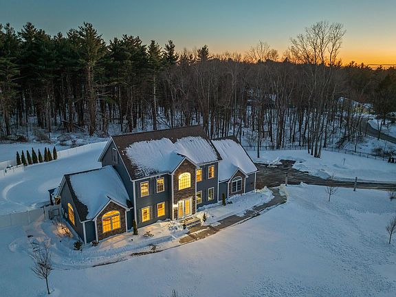 Nestled in the charming town of Atkinson, this stunning young Colonial sits on a private, lushly landscaped 2.35-acre lot. A babbling granite fountain, newly refinished driveway, and five granite lampposts create striking curb appeal. Inside, a bright open-concept floor plan features new white oak floors throughout the first level. The great room is anchored by a handsome stone fireplace with a dramatic backdrop. The chef’s kitchen showcases custom white maple cabinetry, Alaska White granite, stainless steel appliances, a center island, and an oversized 5’x5’ bonus island with dual beverage coolers and seating for four. A flexible first-floor office or bedroom is located near a ¾ bath. Upstairs offers two guest bedrooms, a full bath, and a luxurious primary suite with dual vanities, soaking tub, oversized custom shower, and walk-in dressing closet. The third floor adds a fifth bedroom or office with a half bath. The finished lower level includes a wet bar, media and gaming areas, custom lighting, and another half bath. Outdoors, enjoy a heated Gunite pool, hot tub, patio, built-in grilling station, and vinyl fencing. The three-bay garage offers optional heating/cooling and car-lift height. Additional highlights include $62,000 in seller-owned solar panels, irrigation well, Sonos system, Lutron outdoor lighting, Eero WiFi, generator, new hybrid heating system, security cameras, brand-new Jacuzzi, new fencing with gated driveway, and 145 arborvitaes creating exceptional privacy. A home with upgrades too numerous to list—schedule your private showing today.