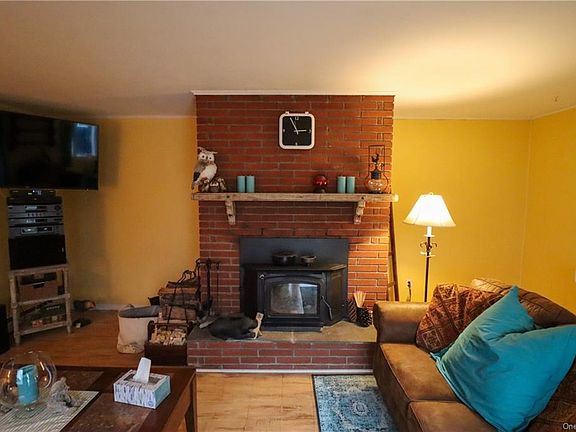 Your new home awaits you! Sprawling ranch, on over 2.5 acres, offers privacy and convenience with easy access to nearby Schools, Grocery Store, Shops, Transit and Nature. Relax and watch the rain fall on large front porch. Inside there is a great flow with a Master en-suite at one end of the home at other end is two standard bedrooms and a second Master w/bath can be used as a Mother-in-law suite or Office. Total of 4 bedrooms,3 bathrooms. Hardwood floors throughout. Woodstove insert with a large viewing glass. Large deck offers views of the gardens, rock wall and firepit plus a secondary lower deck. Walk out back and access several miles of scenic nature while hiking on the Kennedy Rail trail. House is ideally placed on lot to support runoff away from the house. Two car garage, basement and recent updates to Roof, Windows, Bathrooms, & Oil Burner. BRAND NEW above ground oil tank just installed. Pictures don't do it justice, schedule an appointment to see this beautiful home in person.