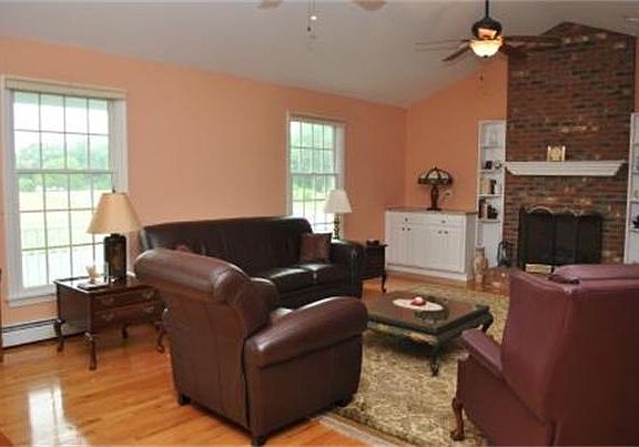 Set on 3.83 acres this charming single level home built in 2006 offers an easy, flowing floor plan. The living room with a fireplace is open to the dining room, the four season sunroom has pocket doors and slider to the patio, the kitchen has granite counters and a sunny eating area with a slider to the patio and yard. A traditional hallway leads to the three spacious bedrooms including the Master suite. A laundry/mud room and half bath. Hardwood floors throughout & pastoral views from every room