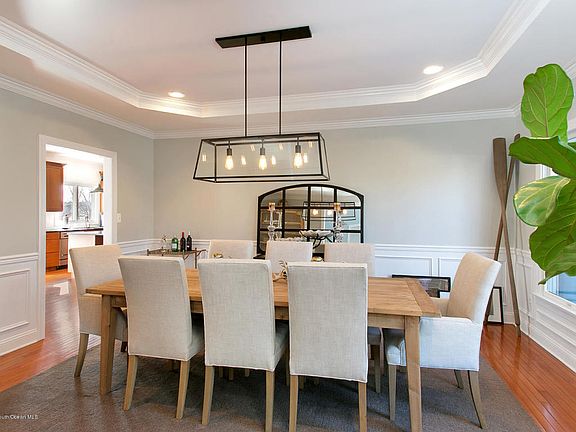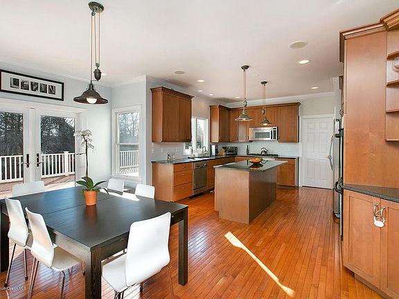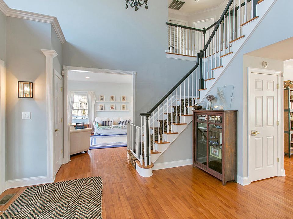 This beautifully appointed home will not disappoint. 3900+ sq. ft. of living space. 5 Bedrooms, 4 full and 1 half bath. Living Room, Great Room and second floor Family Room. Located on Horseneck Point with water views. Home features 9 ft ceilings, decorative moldings and wood floors. Beautiful kitchen with granite tops, center island, double oven. Spacious breakfast room opens up to expansive Trex deck, outdoor shed and fenced in rear yard. Great Room is adjoining kitchen area with wood burning fireplace. Dining Room is appointed with recessed ceiling and lighting, decorative wall panels. This is a beautiful home built in 2002 with a floor plan for today's living.