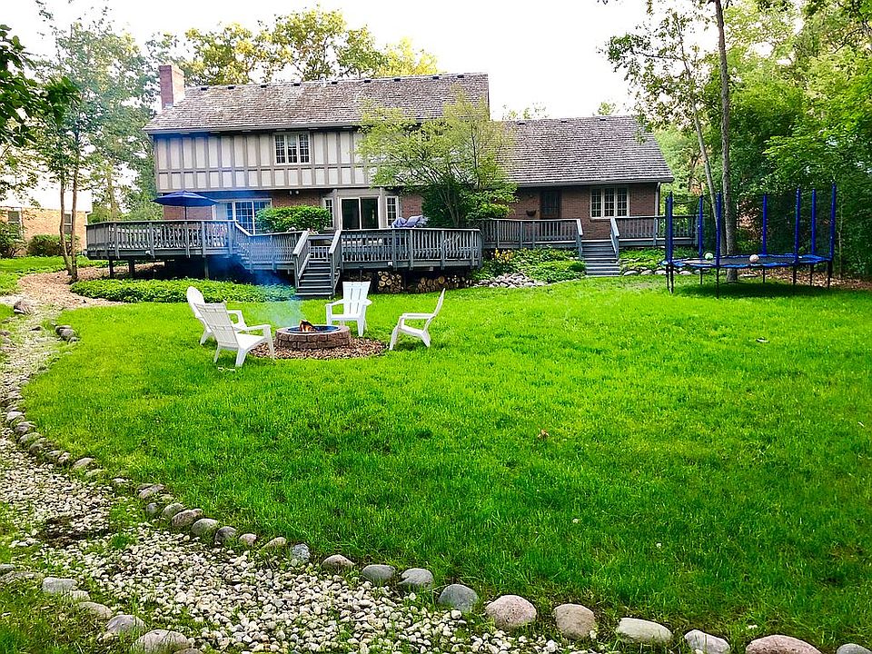 This handsome English country home is set amongst the trees on a private cul-de-sac. The Living Room has cozy bay window and French doors leading to the Family Room. The separate Dining Room with gleaming hardwood floors can accommodate a crowd. The Family Room with brick fireplace is adjacent to the Kitchen-great for today's life style. The Eat-in Kitchen has a large work island, pantry and sliders to gorgeous yard with tiered deck. The Master Bedroom has whirlpool tub, double vanity and walk-in closet. 3 additional bedrooms plus a loft complete the upstairs wing. The 5th bedroom on 1st floor works as anin-law suite. Full basement has cherrywood built-ins, wet bar area and large game room-great for ping pong or foosball. Near to parks, bike paths, shopping, transportation and award winning schools, this home is A MUST SEE!