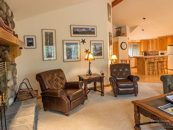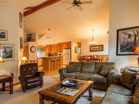Beautiful home with a cozy atmosphere & nestled in a wooded setting. Enjoy watching the wildlife from your window or deck w/ plenty of aspen & pine trees throughout the backyard. You have a natural screen from the rest of the world. Features a great room, beautiful wood floors & wainscoting, as well as fabulous Sunriver themed decor. Enjoy the gas assist wood burning fireplace for ambiance. Master suite is separated from the guest bedrooms.