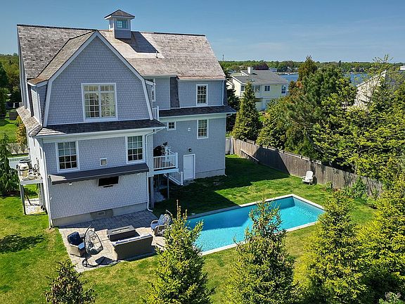 Second home in from the Long Island Sound on Pebble Beach with views across to Longshore, (Golf, Sailing and Tennis all available to Westport Residents) this Nantucket shingle style home built in 2017 sits at FEMA height on just over a quarter acre of level land with a heated in ground pool. The Open Plan first floor includes Living Kitchen and Dining Rooms and a ground floor Bedroom Suite with Full Bath. French doors open to a balcony deck and the Patio, Backyard and shimmering Heated In Ground Pool below. Chill and Grill on the bluestone patio (wired for outdoor TV and Sound) or play barefoot on the lush grass! Feeling adventurous? Drop your kayak or paddleboard in the sound and head off out around "the Island" or across the bay for Dinner! Upstairs the big Master Suite features a gorgeous white and muted gold fixtured Bathroom with Spa Tub and a separate Shower and two large walk in closets. There's also a Private balcony overlooking the pool and yard...leave your door open in the evening and listen to the seabirds and breathe in that healthy, fresh & salty air. Two Additional Bedrooms with a Jack and Jill Bath and a spacious and bright Laundry Room round out this floor. The Third Floor Getaway makes a great office space with its own private balcony and water views to the North East. Two Car Garage with treated floor also makes a great Gym area! Desirable Saugatuck Neighborhood Half a Block from the Water In Ground Heated Pool 4 Bedrooms - 3 Full Bathrooms 3,340 sq ft 9' Ceilings .27 Acre Lot Master Suite with Balcony and Two Huge Walk In Closets 2 Fireplaces Gas Heat - Central Air - City Water - City Sewer On Demand Hot Water Built to FEMA Code Two Car Garage Walk to Sea Wall and Launch Your Kayak/Paddleboard/Sunfish
