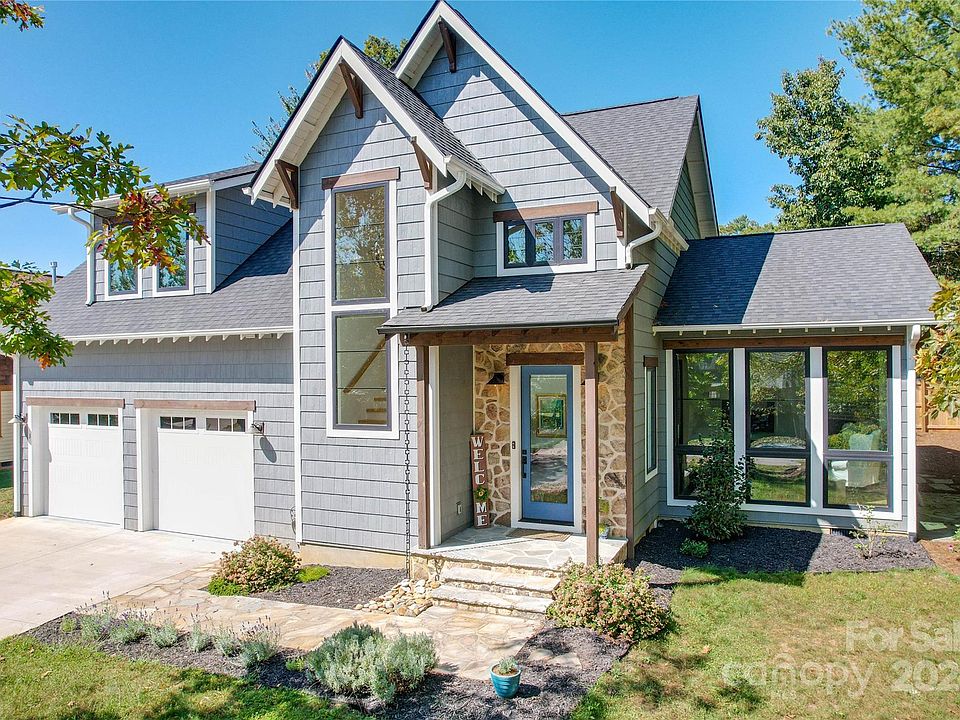 Craftsman custom-built home, NC Certified Green, partial mountain views and minutes to the BRP. Discover many options for relaxation, from the open concept floor plan, vaulted ceilings, gas fireplace and screened-in porch that leads to a flagstone patio. The open floor plan is ideal for entertaining with the kitchen at the heart of the home boasting upgraded stainless steel appliances and cabinetry and generously-sized island. Primary Suite is luxurious featuring spa-like bathroom with shower, soaking tub and walk-in closet. Upstairs boasts 9' ceilings, loft and 3 spacious bedrooms. Both the main floor and upper level have wide plank white oak floors and laundry hookups. Property is equipped with state-of-the-art security & smart control features including motorized blinds, smart lighting & 2 zone HVAC. Additionally, this home boasts oversized garage doors with loads of storage . Across from Reems Creek Golf Course this home is 5 min to Weaverville and 15 min to Asheville.