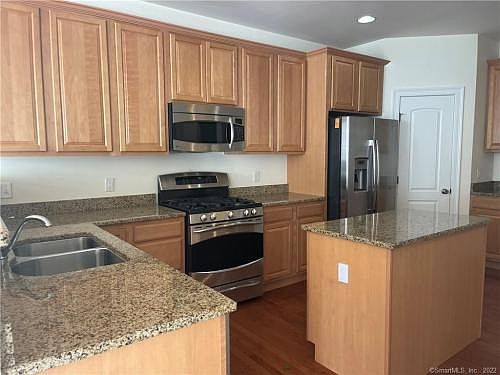 Fabulous end unit three level townhouse in coveted Timber Oaks development. Rentals are rare in this neighborhood for a reason - it is a wonderful environment with lovely landscaping and sidewalks throughout for jogging or taking a stroll to the tennis courts, pool or clubhouse. The unit itself is very well maintained with hardwood floors and clean carpeting. The main level flows from living room to kitchen to dining room with a separate room for a study or office. The living room offers sliding doors out to a deck to enjoy cookouts or peaceful time outdoors. The lower level is abundant with space for a recreation room, theatre, play room - whatever you may need. Then, at the end of the day, relax and unwind in the spacious upper level with a bonus area for a reading nook or study area, large primary bedroom with walk in closet and full bath and two additional good sized bedrooms with another full bath in the hallway. The laundry room finishes out the upper level for convenience. A serene environment, The Villages at Timber Oaks is not far from restaurants, theatres, and downtown Bethel for shopping. Come enjoy the lifestyle