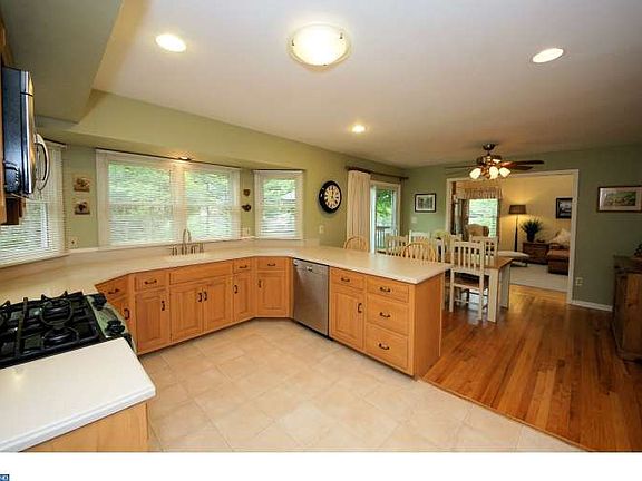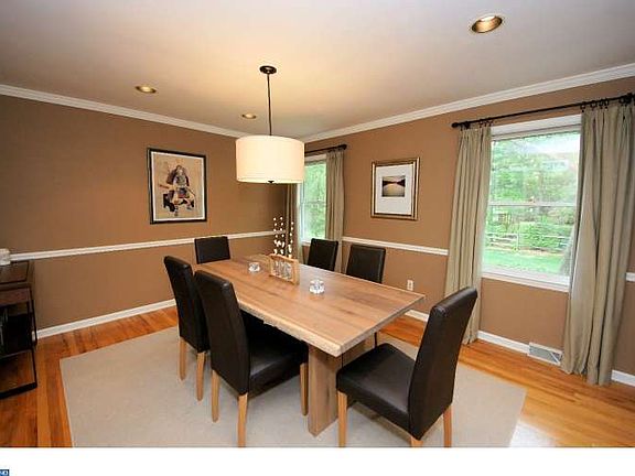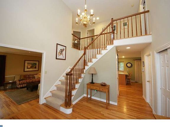 Beautiful, bright and airy perfectly describe this impeccably maintained and updated home with dramatic two-story foyer and gleaming hardwood floors throughout. The living and dining rooms are nicely appointed with crown and chair rail molding. The bay window in the living room creates the perfect setting for a game table, providing plenty of light. The open kitchen with stainless appliances and a tile backsplash has a bank of windows that overlooks the deck, patio and backyard. The large family room has a cathedral ceiling with skylights and a wood-burning fireplace with a striking brick mantel and surround. The huge master bedroom with walk-in closet and spa-like bath, along with three additional, spacious bedrooms and another bathroom are all located on the upper level. All of the bathrooms throughout the house have been updated. The basement has been partially finished and has plenty of room for your media equipment, exercise room and office space. Walking distance to village and park. Easy access to Lawrenceville cycle and walking trail. This home is ready for you to unpack and move right in!