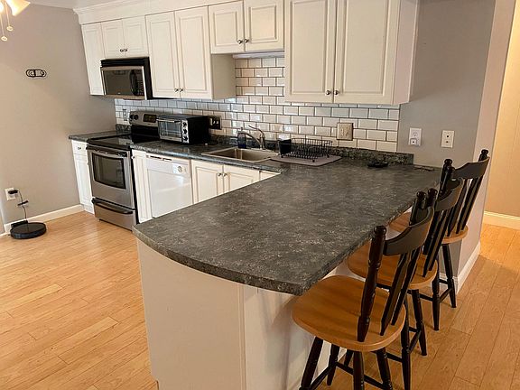 **Open House Sunday, February 27th 10:00 - 1:00. Welcome to Back Cove Condominiums, just steps from the shipyard, Spruce Creek & the Foreside! This 2 bedroom 1 bath condo has an open concept living space with 748 sq. ft. Recent updates include, hardwood floors, stainless steel appliances, subway tile backsplash, updated bathroom flooring, and neutral fresh paint throughout! This unit sits on the second floor of a three level building. A private covered balcony deck provides a peaceful wooded view. New washer and dryer in unit and plenty of closets. Tenant is responsible for heat and electricity. Avg Natural Gas bill $45/mo during winter months only, electricity ~$40. Landlord will cover water, sewer & HOA fee. Association will manage trash & snow removal, in addition to landscaping. One assigned parking spot per tenant, additional parking for visitors or additional vehicle. Limit of 1 dog allowed. One year lease required. First months rent & security deposit required upon signing the lease. Apply at TurboTenant: Property Id 837430 Due to the amount of showing requests, I'm holding an open house on Sunday, February 27th from 10:00 - 1:00. I do have tenants currently living there. The address is 3 Philbrick Lane #4 in Kittery, ME. There are 3 condo buildings, it's the one in the middle. If you have any questions, feel free to send a message. Let me know if that time works for you! Renter pays electric, internet, cable, & heat. Owner pays water, sewer and HOA.